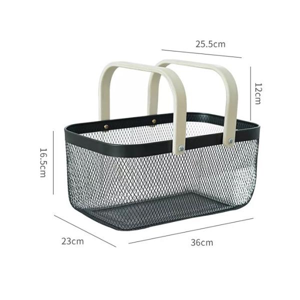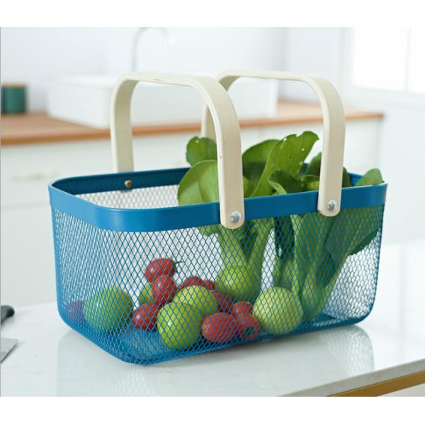 Creative Fashion Square Wood Handle Fruit Basket Iron Hand-Held Material Basket Fruit Basket Kitchen Shopping Basket