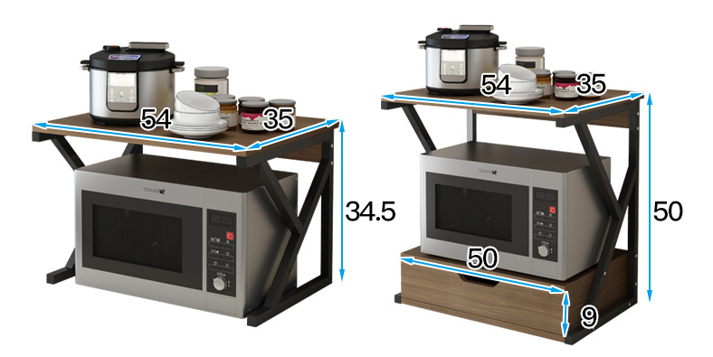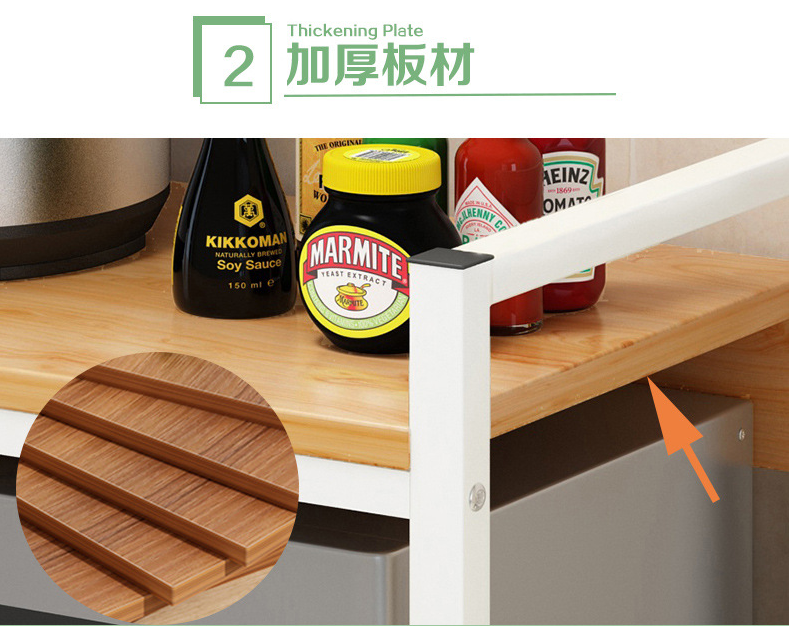 Strong load-bearing, large capacity, a variety of colors, new styles. Can hold seasoning bottle, electric cooker, microwave oven, juicer, waterproof and scratch-resistant easy to clean. Thickened plate, plate steel frame combination more stable, triangle design more stable.